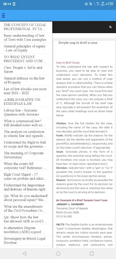 The App gives free well written notes on legal field, it includes legal problem questions, scenarios, illustrations with straight answers. It contains resents cases decided from different courts, The app also give out translation to legal words and maxim to help the reader understand