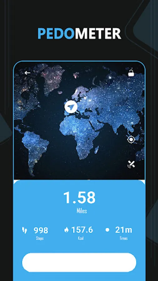 This Running Counter Pedometer uses the device's built-in sensor to count your every step accurately. No internet or GPS required, so it can optimize battery consumption. It tracks your burned calories and weight loss, walking distance and time, etc.