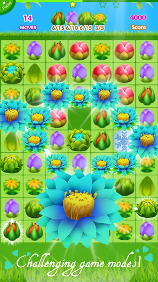 Link 3 or more blossoms of the same color to clear up them and then you will be filled with sweet flowers. Make the buds bloom to achieve goals before you run out of moves! Crush the blossom saga in this blossom crush paradise by your finger, and enjoy blossom blast!