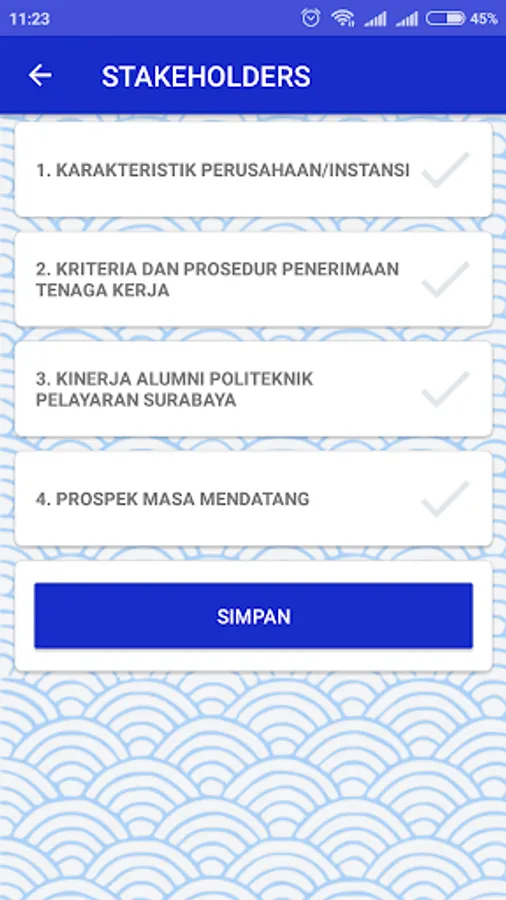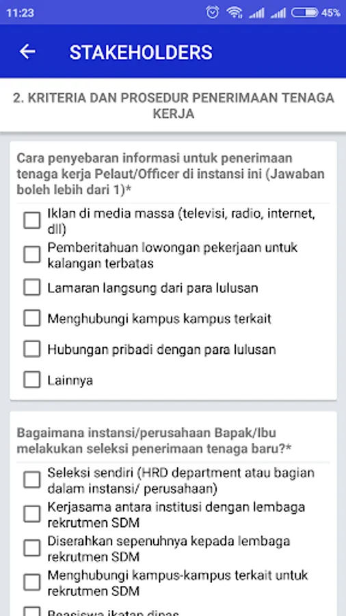 This application is for a questionnaire for stakeholders working place alumni of Polytechnic Sailing Surabaya