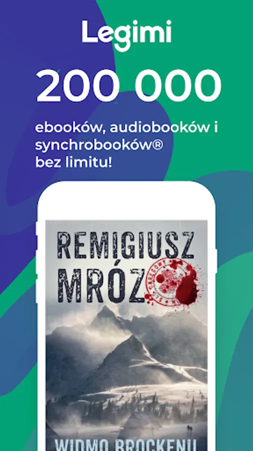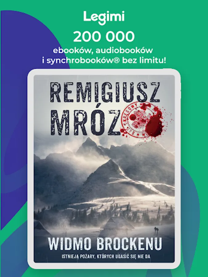 Download the free Legimi application and gain unlimited access to over 200,000 books in the subscription (ebooks, audiobooks and synchrobooks®). Among them you will find titles from the most famous, world-class authors such as Stephen King, Margaret Atwood, Harlan Coben, Camilla Läckberg, Jo Nesbø and B.A. Paris, as well as best-selling native artists (including Olga Tokarczuk, Katarzyna Bonda, Szczepan Twardoch, Katarzyna Grochola, Remigiusz Mróz, Magdalena Witkiewicz and Wojciech Chmielarz).