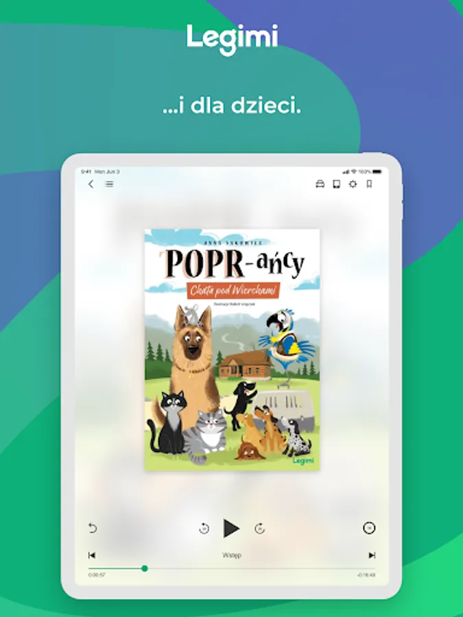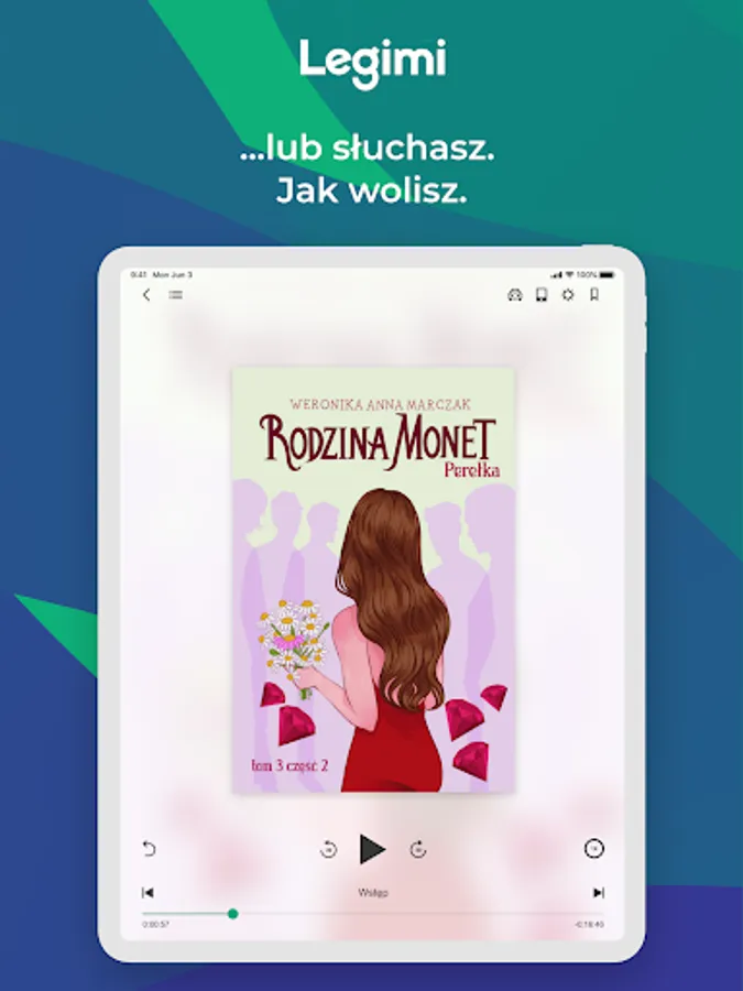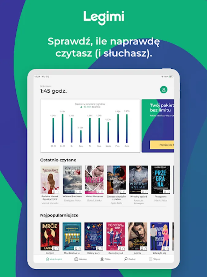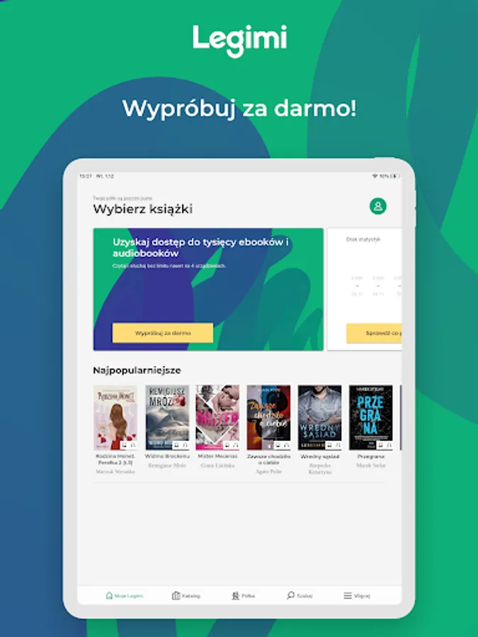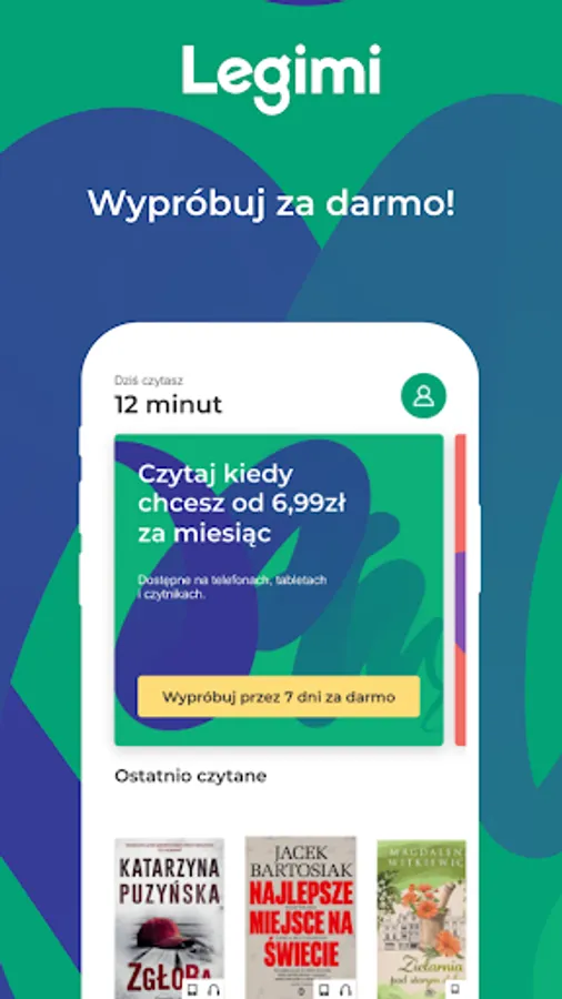 Try it for 7 days for free access to thousands of titles from the best Polish publishers! If you like it, read all the news, bestsellers and ... whatever you choose from PLN 6.99 a month, even on 4 devices (smartphone, tablet, computer and e-reader). By ordering the "ebooks + audiobooks without limit" subscription, you have both text and audio versions at your disposal. Thanks to synchrobooks®, you can switch formats at any time to never stop reading. Legimi is a unique, mobile library, available at your fingertips.