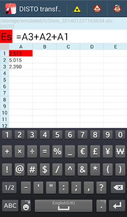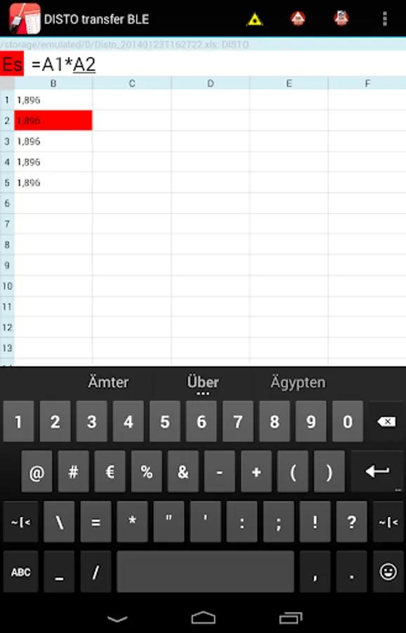 Now you can also transfer your measurements directly into an Excel file. You can either generate this file on the Android device itself or you can download and open any Excel file previously used on another computer beforehand. The most common formulas from Excel are supported.