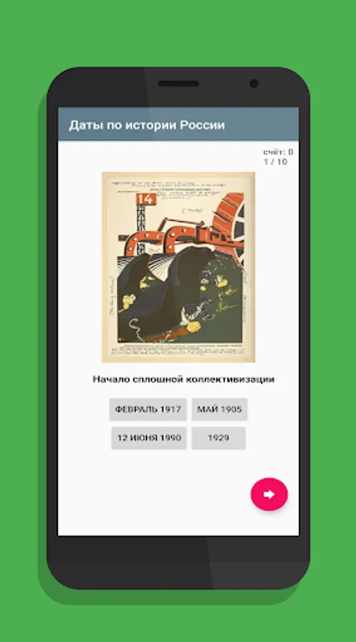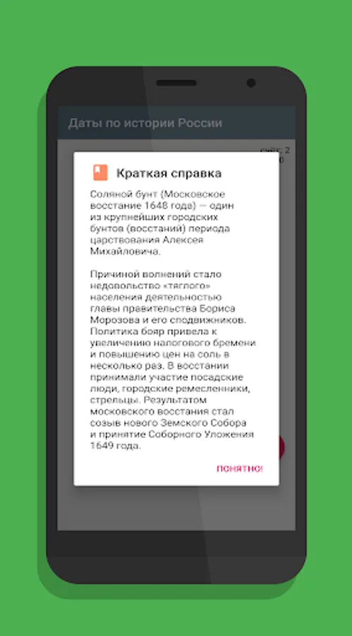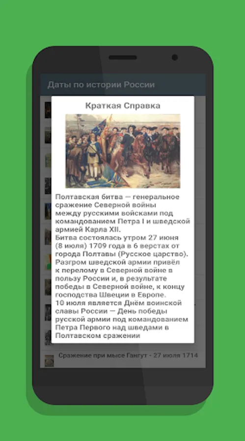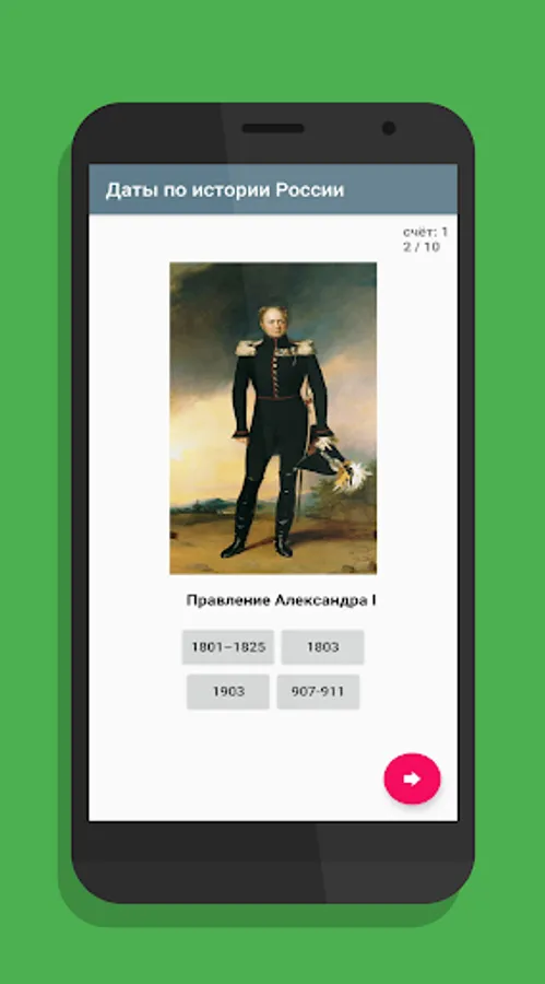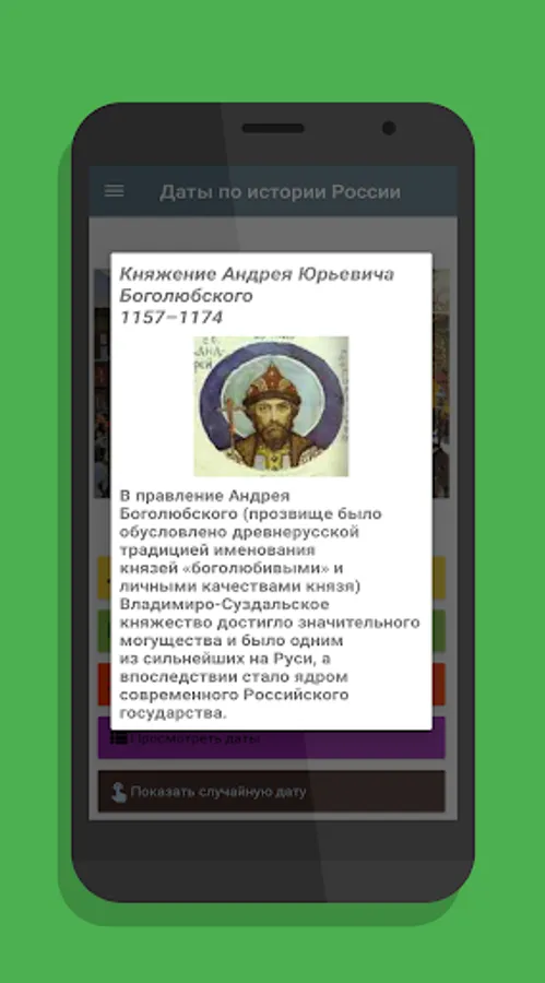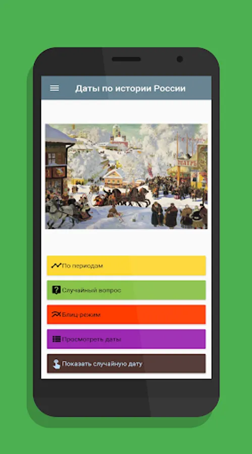 3 game modes will help you remember the dates. There are more than 400 dates in the application. For each of them you can see a historical photograph or picture, read the history of the date. Such visualization will help to memorize dozens, or even hundreds of dates, in a short time! The process becomes interesting and invisible.