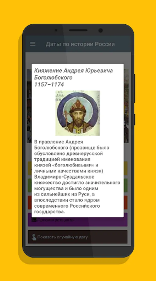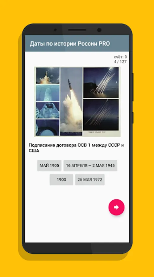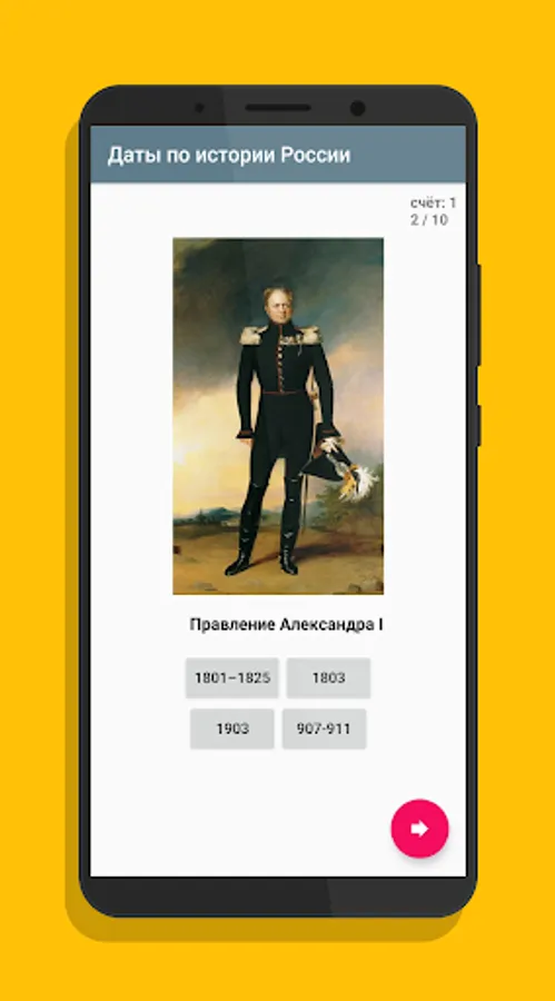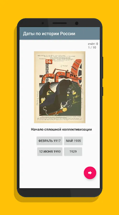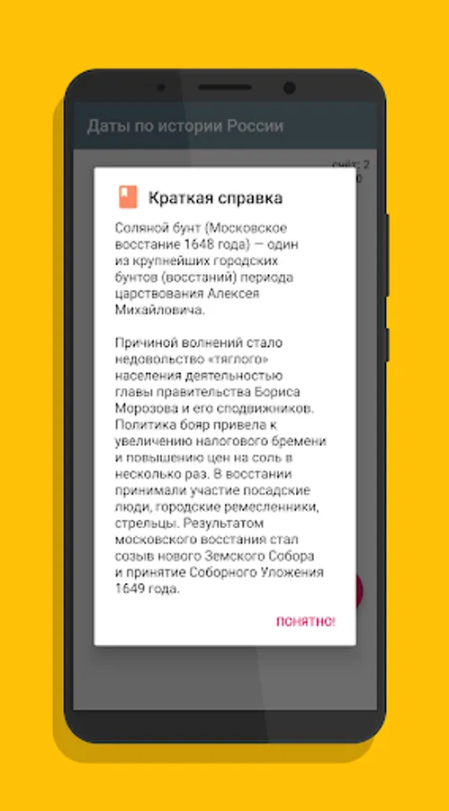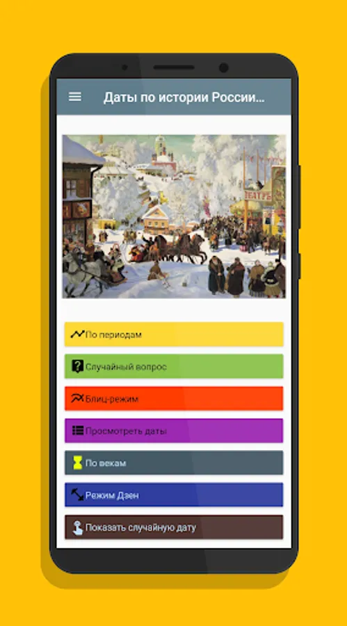 5 game modes will help you remember the dates: in the PRO version, the "centuries-old" mode and the "Zen" mode are available (with dates in which you recently made a mistake). There are more than 400 dates in the application. For each of them you can see a historical photograph or picture, read the history of the date. Such visualization will help to memorize dozens, or even hundreds of dates, in a short time! The process becomes interesting and invisible.
