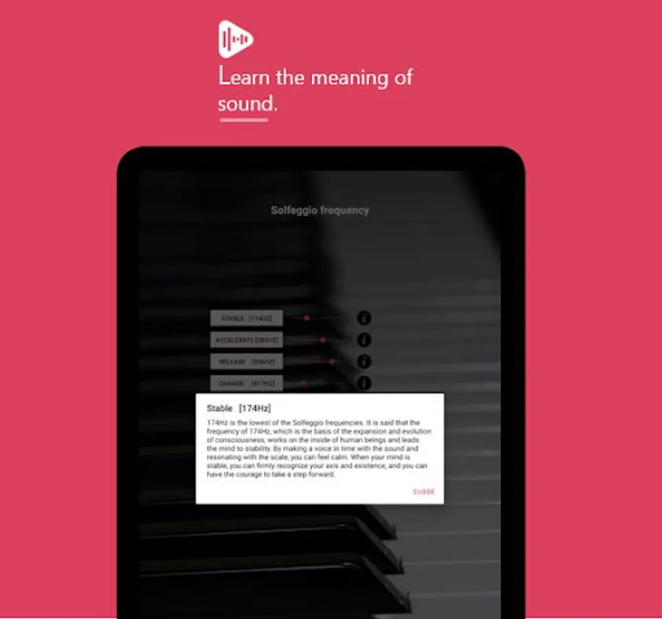 It is an application that can play 9 kinds of sounds that exist in the Solfeggio frequency.