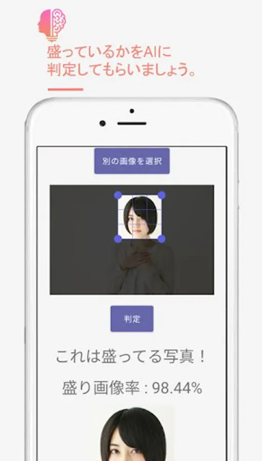 2. 2. Enclose the bust-up (from the neck to the top) in a square and press the judgment button.