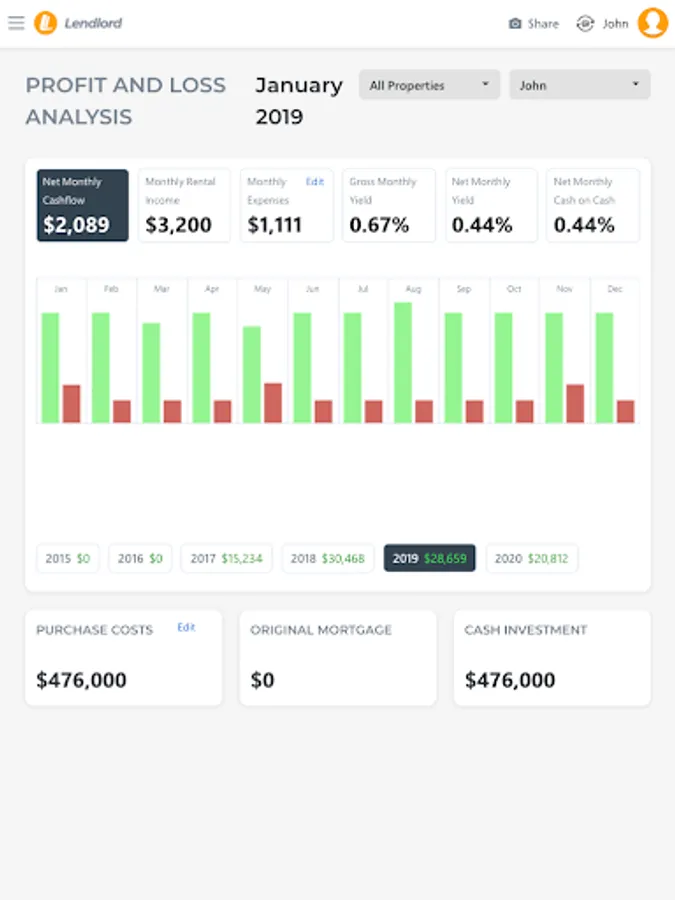 - Review your Key Metrics overtime (LTV, Equity, Yield, ROI, Cash on Cash and more)