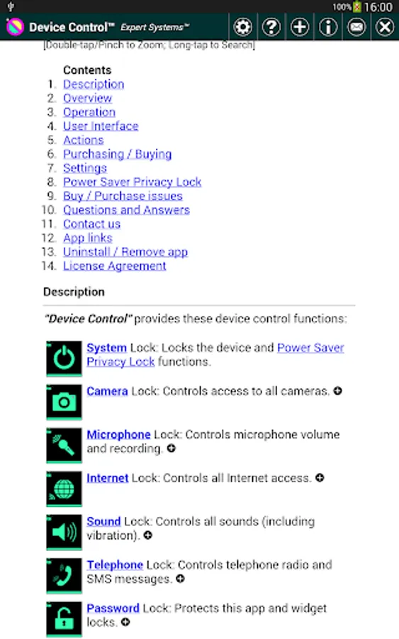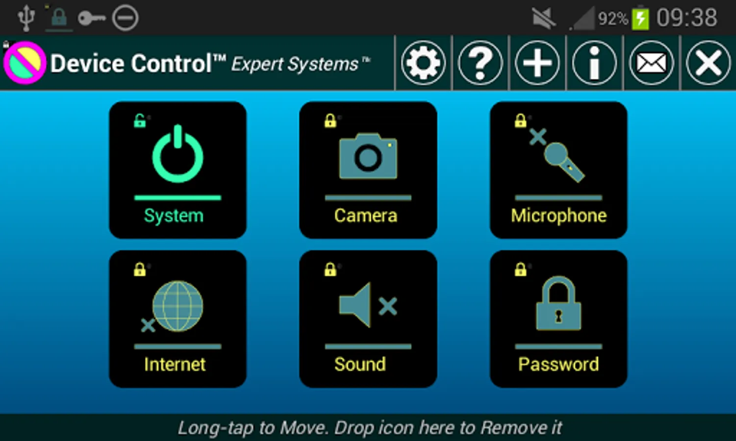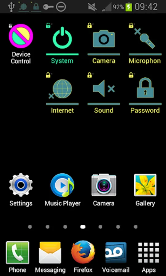 "Device Control" app will immediately lock or unlock that function.