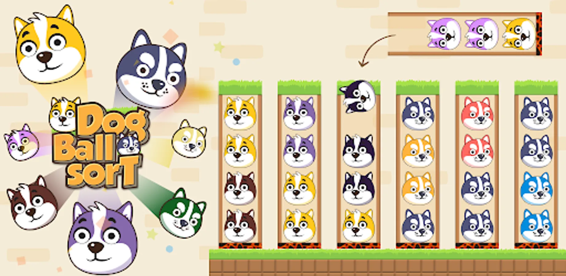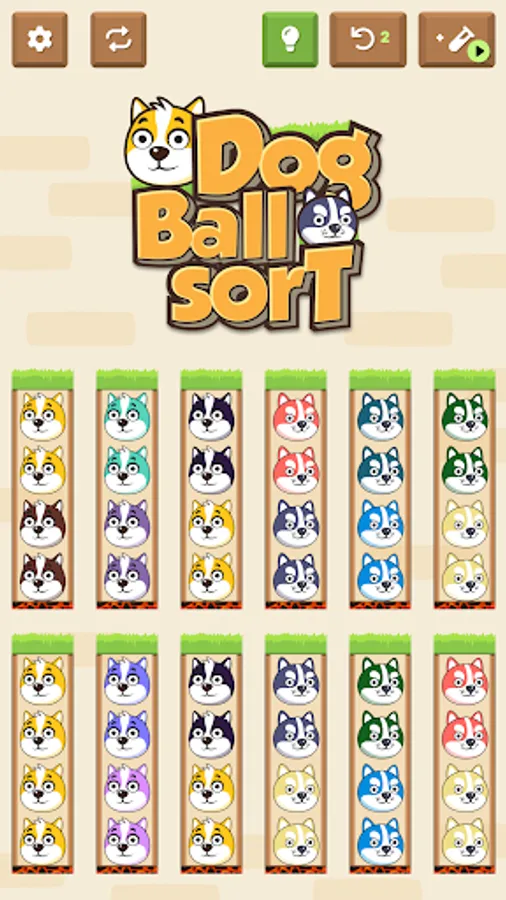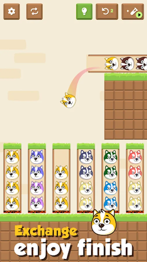 Dog Color Sort - Save the Dog: a relaxing color sorting game. Arrange same animals on same platform, do you think it is easy ? No it's not so easy, its need intelligence to arrange.