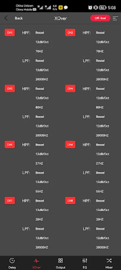 5.Selectable crossover slopes (6,12,18,24,30,36,42,48 dB/octave)