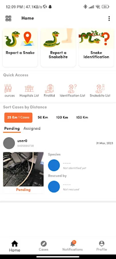 This app is to streamline rescue of snakes from human habitations. It is intended to minimize threats to snakes and humans and to avoid any negative interaction between them. It also aims to create awareness among public regarding snakes and the service they provide to the ecosystem. It also handles snake-bite cases and will help public to find the nearest place where treatment is available.