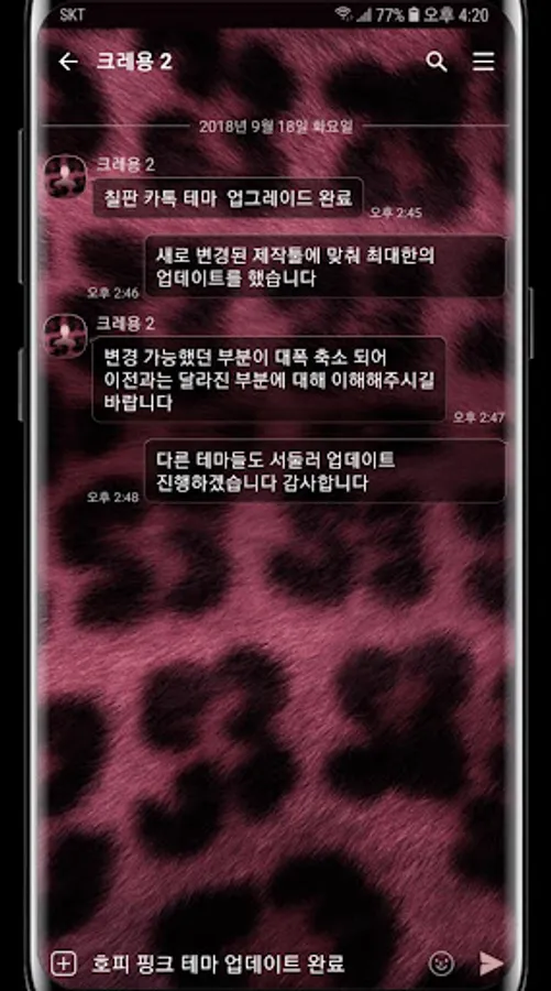 It is a Kakao Talk theme with a luxurious pink tone Hopi background.