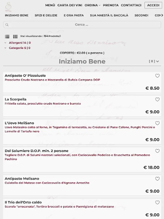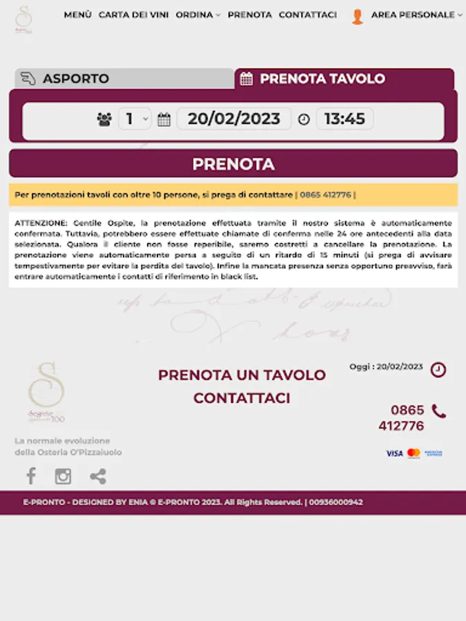 Application for managing the digital menu (allergens and categories). Management of takeaway orders and table reservations.