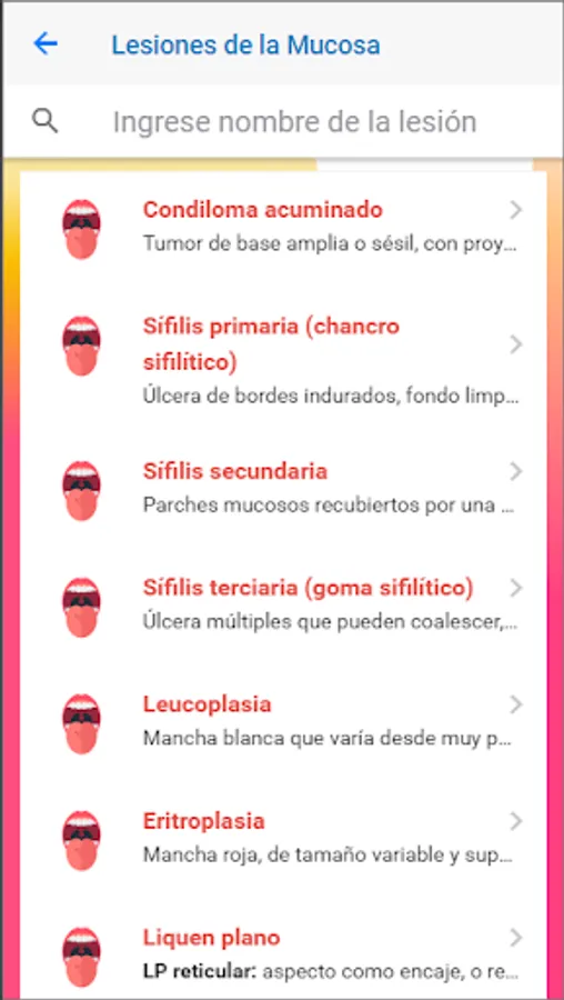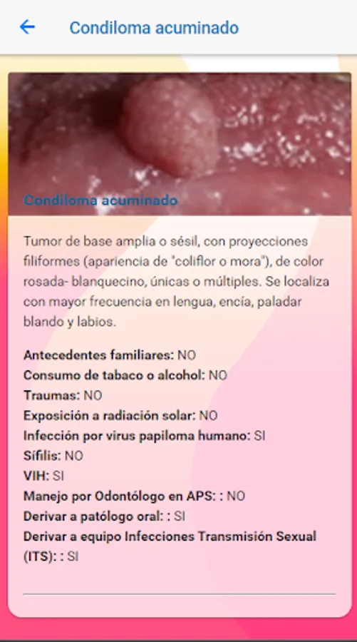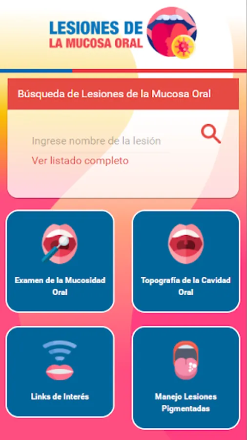 Application with multimedia resources, databases and descriptions of lesions in the oral cavity, including a library of lesions and clinical procedures for oral examination.
