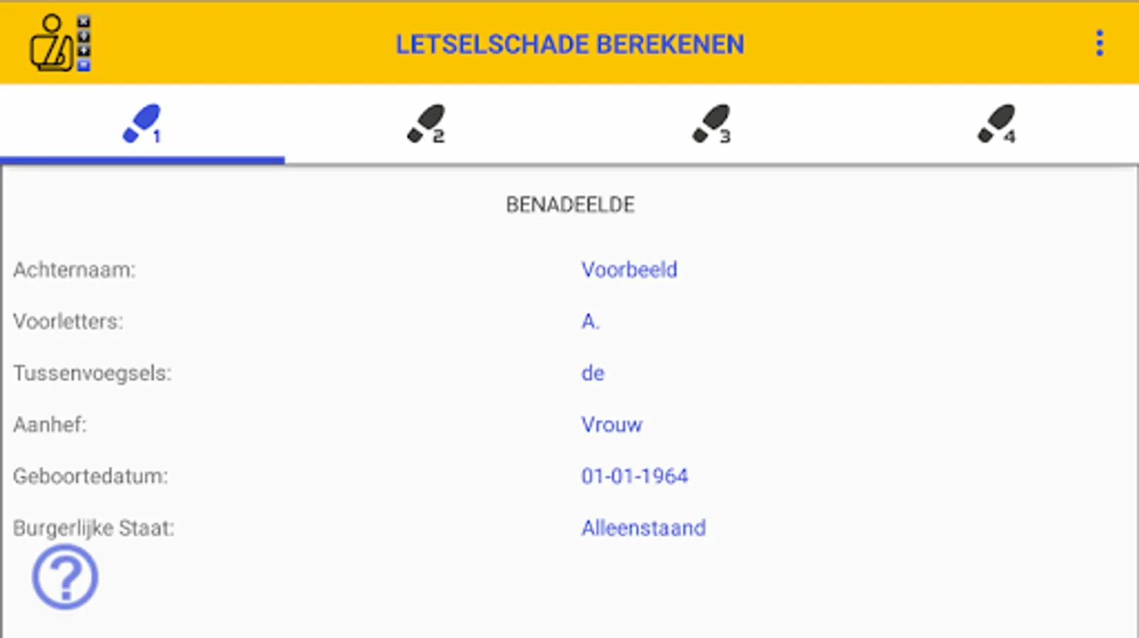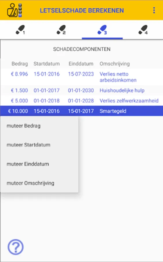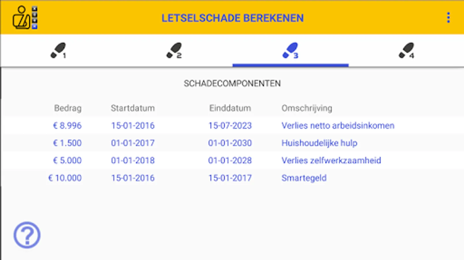If you have suffered personal injury or if you are working in the personal injury insurance industry, you can calculate the amount of a claim with the Calculation of INJURY DAMAGE app. Within the app you go through 4 simple and clear steps. You can print and / or save the calculation of the personal injury in the form of a report as a PDF document.