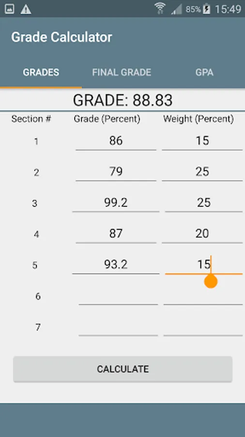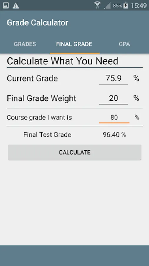 Compute all your grade calculations with this easy to use app! Calculate your current grade, what you need on a final, and your GPA all in one simple app.