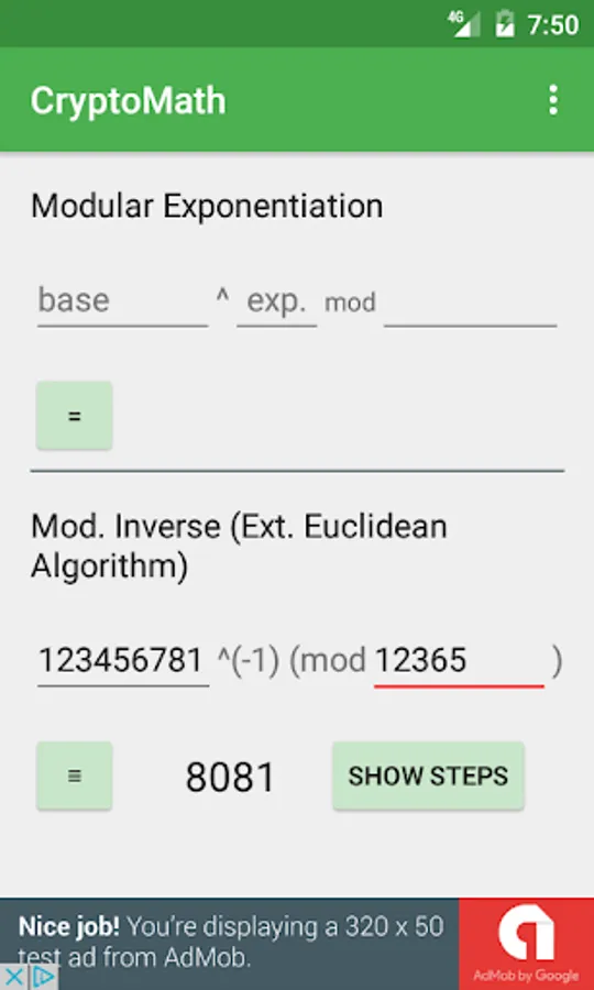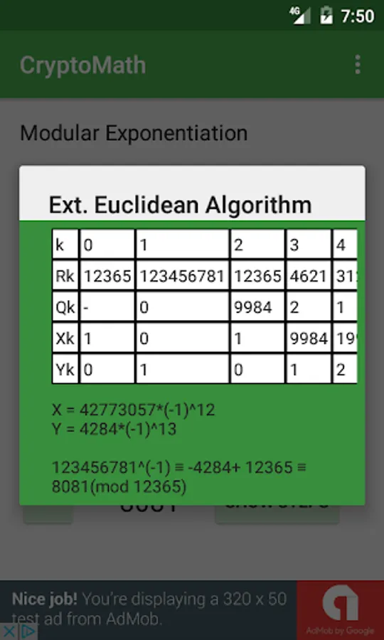 Modular arithmetic tool for university subjects related to cryptography.