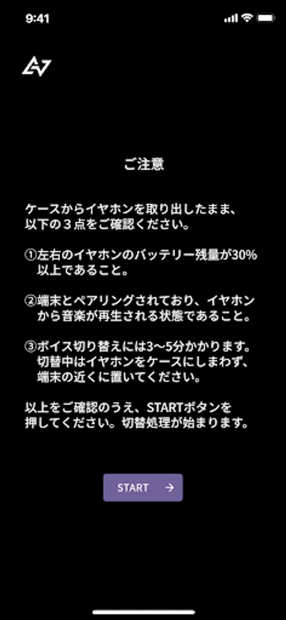 By using this application, you can select and switch the voice guidance played from the earphone body from two types.