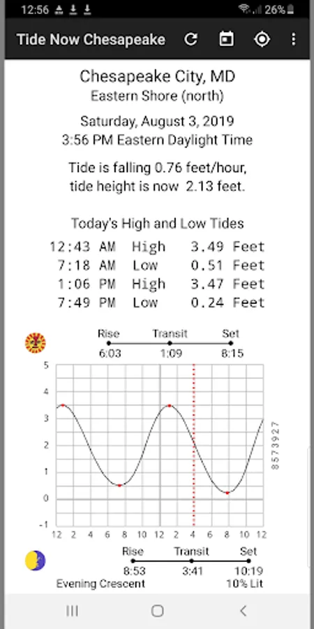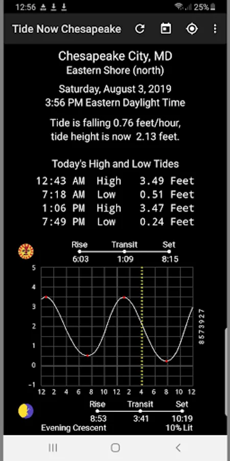 Tide Now Chesapeake is a tide calculator for the Chesapeake Bay. It also covers the Delmarva peninsula Atlantic shore. The app breaks the area into 14 regions organized by the waterways. It includes 126 tide stations.