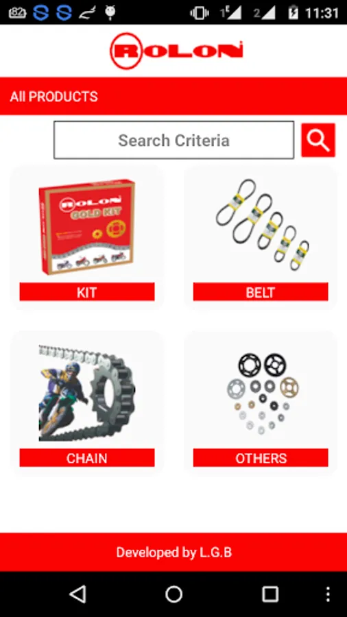 This application provides information on the list of all ROLON products that are manufactured & supplied by L.G.Balakrishnan & Bros Limited,. ROLON products include Automotive Kits, Automotive Drive, CAM, Timing and Silent Chains, Cogged & V belts, and other products such as Automotive rear & front sprockets, Automotive Tensioners, chain Lube, Grease, etc..The MRP details of each product is also part of this application.