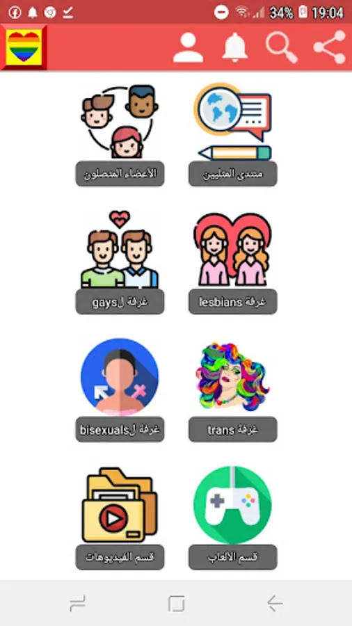 Arab gay chat is an Arab chat application and a social network for dating and chatting with gay guys and lesbian girls for free from various countries of the Arab world such as Egypt, Morocco, Algeria, Tunisia, Syria, Palestine, Lebanon, Iraq, Saudi Arabia and the Arab Gulf in general and other countries of the Arab world. If you are a gay or bisexual guy looking for friends with the same sexual orientation as you, or if you are a lesbian girl looking for lesbian friends, and also if you are transgender, then the application will be very suitable for you. The application provides several features and advantages for communicating and messaging with new friends, such as written correspondence, voice and image chat or video chat, sending pictures and emojis in public and private chat, group chat rooms as well as random chat and other features that make gay chat The Arabs are one of the most powerful Arab chat applications. The application also provides a forum called the Arab Gay Forum, especially for discussing various topics such as football, sports, movies, cinema, general culture, economics, languages or learning languages, fashion and other topics that you may want to discuss with other people, in addition to this there is a dedicated section For games, you can play free professional games without the net, and there is another section for videos that enables you to share short video clips with users, and you can also watch other videos shared by others.