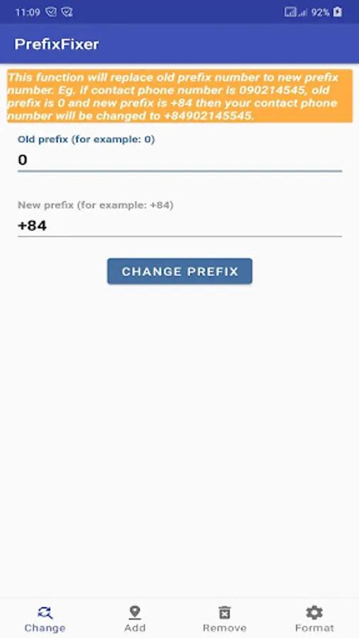 For ios: https://apps.apple.com/vn/app/contactprefixfixer/id1635039737