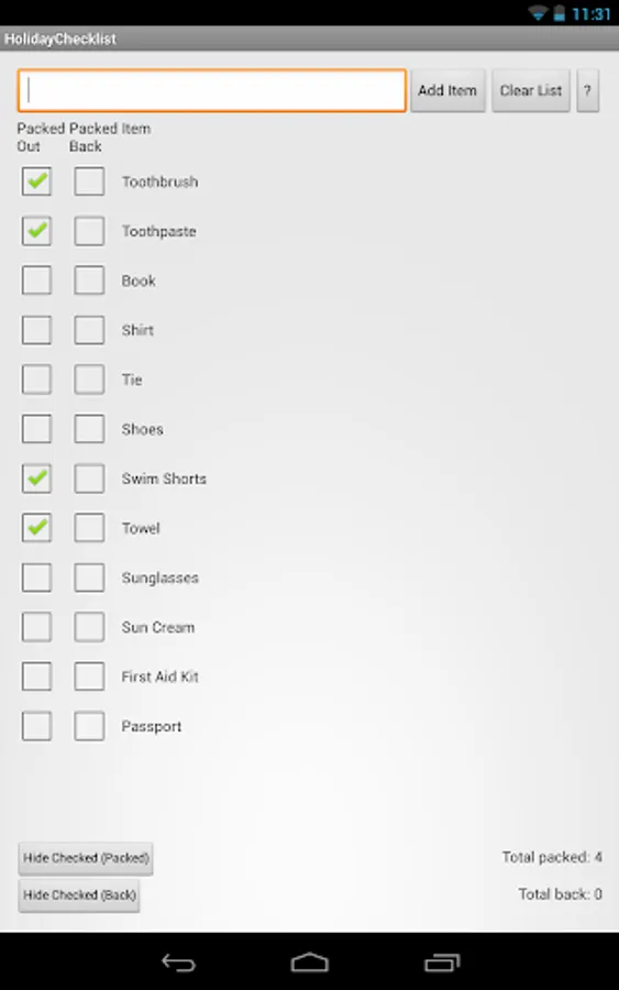 3. Upon returning, tick everything off again to ensure you brought everything back with you