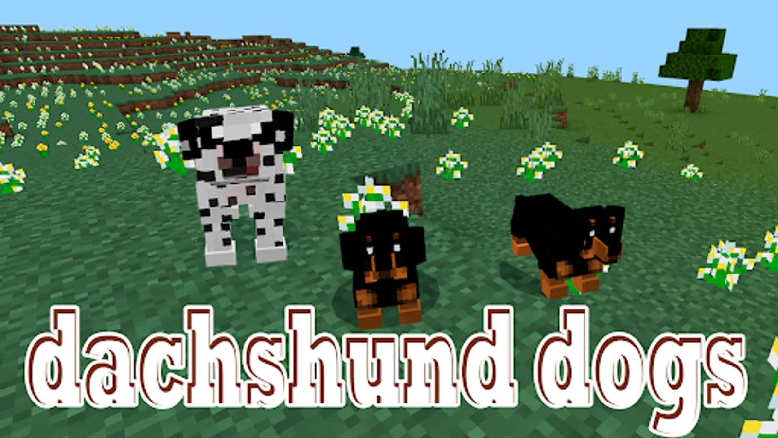 Dog pet game mod for Minecraft PE is an application that increases players' enjoyment of the game by allowing them to have a faithful and cute canine friend. There are over 30 different dog breeds available in the mod based on real breeds such as the Poodle, Chihuahua, Dalmatian, Husky and Pug, each with its own texture and coloring. The main function of the mod is to tame dogs craft, for which the player can feed his pet with bones or meat if you need to take care of his health. In addition, dogs can be used to extract resources and protect the player from opponents. Dog World mod has great voice acting that helps players immerse themselves in the game world and enjoy its gameplay. Players can play with their pet, train it, and take part in various challenges and adventures, allowing them to feel even more involved in their game. Overall, the Dog World mod allows players to add even more variety and depth to their gaming experience by allowing them to have a loyal and sweet canine friend who will always be there and ready to help at any moment.
