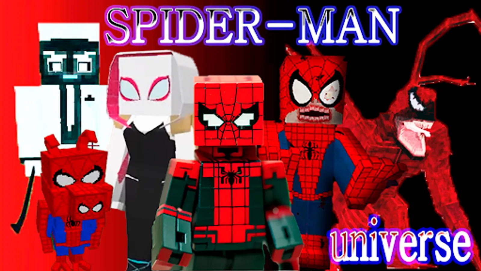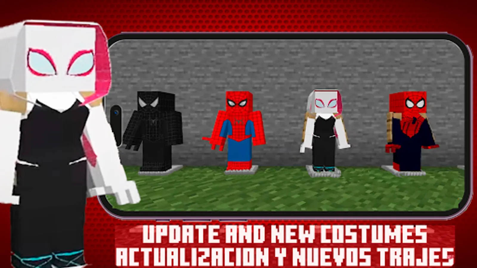 Spiderman minecraft Experience the world of Marvel superheroes from the Spider-Man universe with "Spider-Man Superhero Mod" for Minecraft PE! In this modification, you will be able to put on any costume of SpiderMan or Spider Woman and others and fight with villains. You will also meet and interact with various characters from the Spider Man universe. Eventually, you'll have access to boss weapons. This spiderman game is free