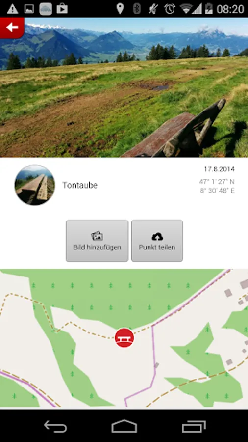 Find the next seating-bench, in swiss-german called "Bänkli", for sitting down, relax and enjoy. Other categories like fire places, play grounds or viewpoints are also available or can be added - of course with pictures of it and pictures of the view. This has already been done for over 3000 points in Switzerland and other countries :-)
