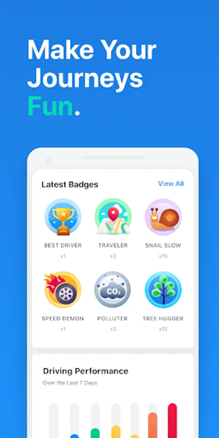 Gamification in the app adds fun – check who is a better driver or compare your badges.