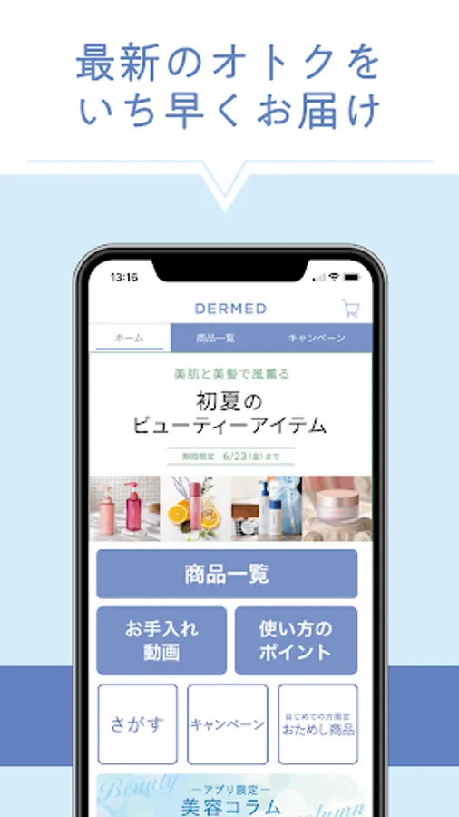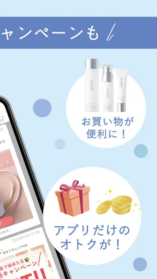 Deliver app-only campaigns and profitable information with push notifications. In addition, if you answer the questionnaire when registering the app, we will inform you of your favorite products and profitable information according to your worries.