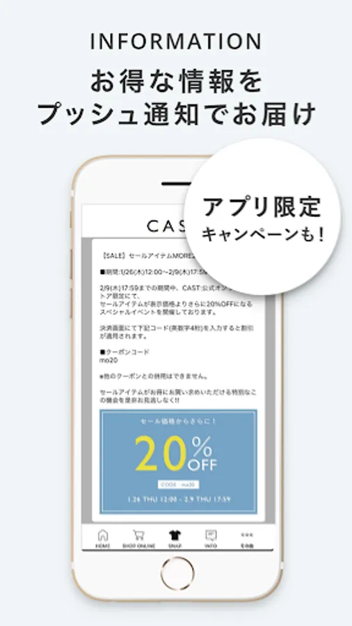 In addition to seeing the latest information and LOOK of CAST :, you can enjoy shopping with the app, and it is an app full of abundant contents.