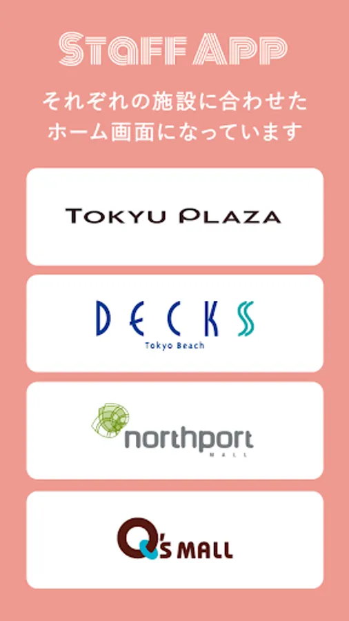 You can see various systems of the shopping center where you work, facility information, and the latest news.