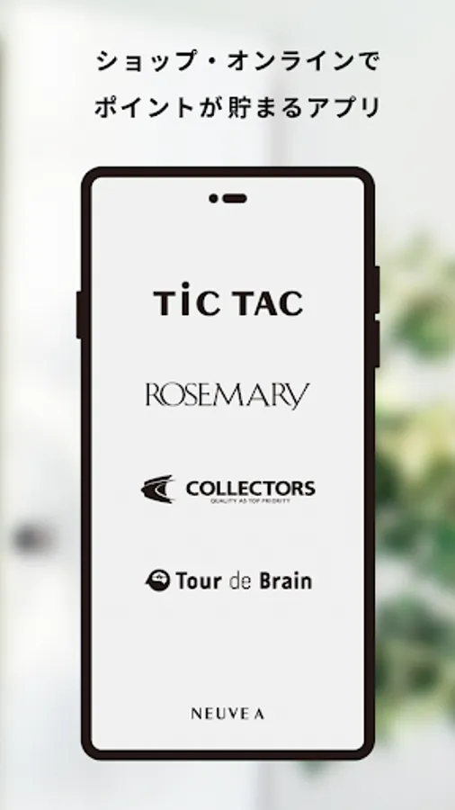 Five representative shop brands operated by Nouveau A, watch "TiCTAC", cosmetics "ROSEMARY", men's miscellaneous goods "COLLECTORS", stationery miscellaneous goods "Tour de Brain" It can be used as a membership card common to shops such as "Tools de Brain)" and online stores.