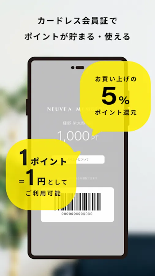 It is a membership card application that collects points common to all shops and online stores of "Nove A".