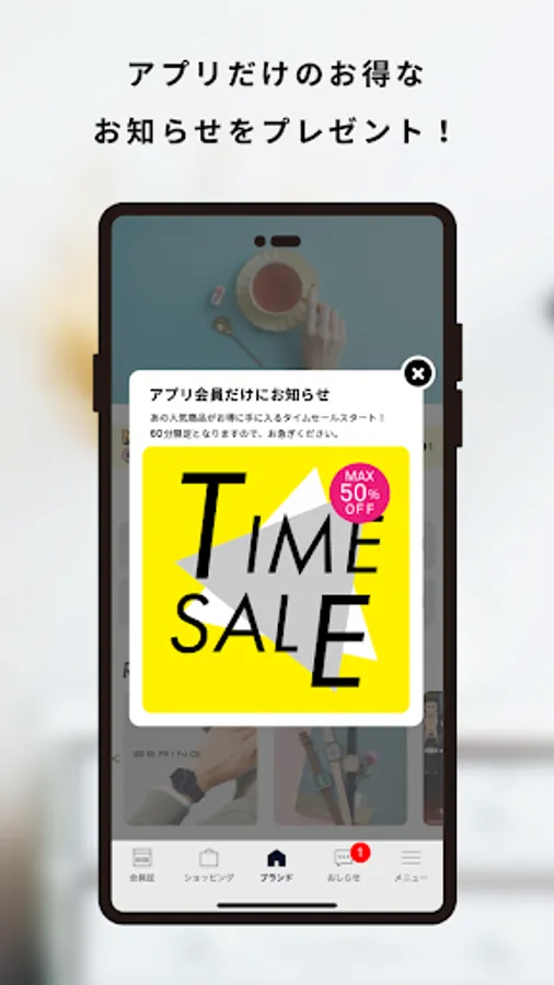 Special information limited to the app We will deliver the topics of each brand by push notification.