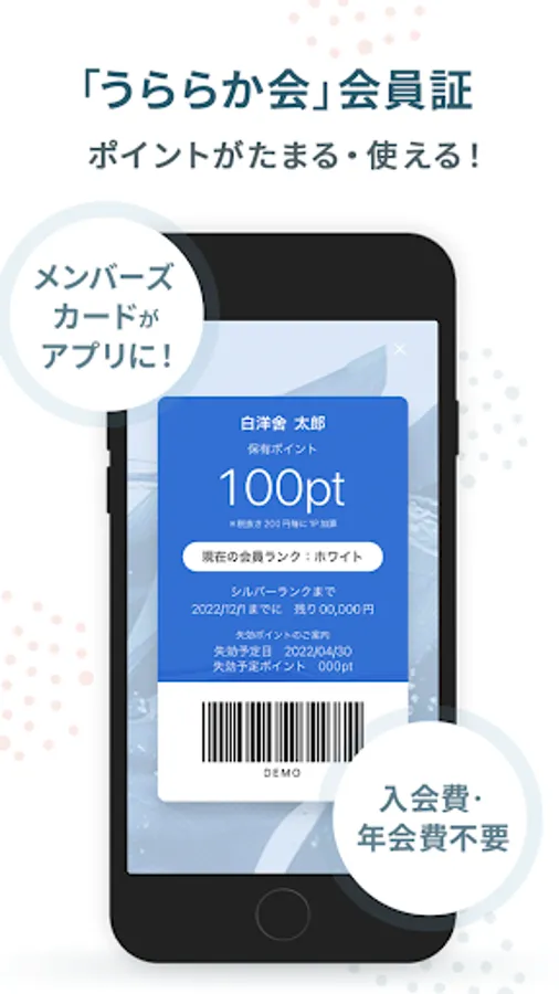You can collect and use the points of "Uraraka Membership Card" that does not require membership fee or annual membership fee! Cardless and refreshing wallet.