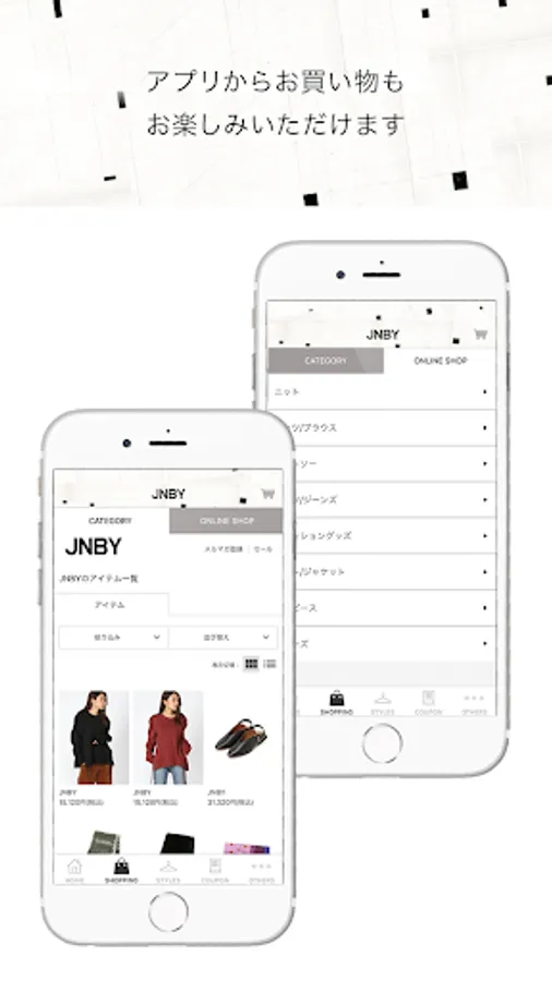 JNBYの最新情報はもちろん、アプリでショッピングや最旬のスタイリングをご覧いただけます。