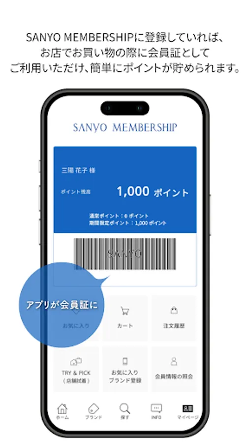 If you are registered with SANYO MEMBERSHIP, you can use it as a membership card when shopping at stores and easily accumulate points.