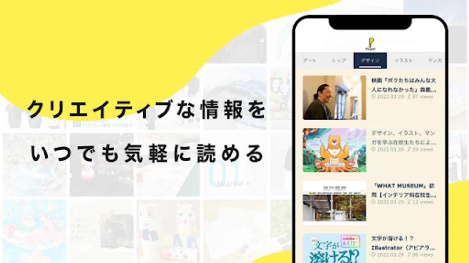 You can enjoy creative articles such as design, illustration, manga, photography, art, etc. with the app.