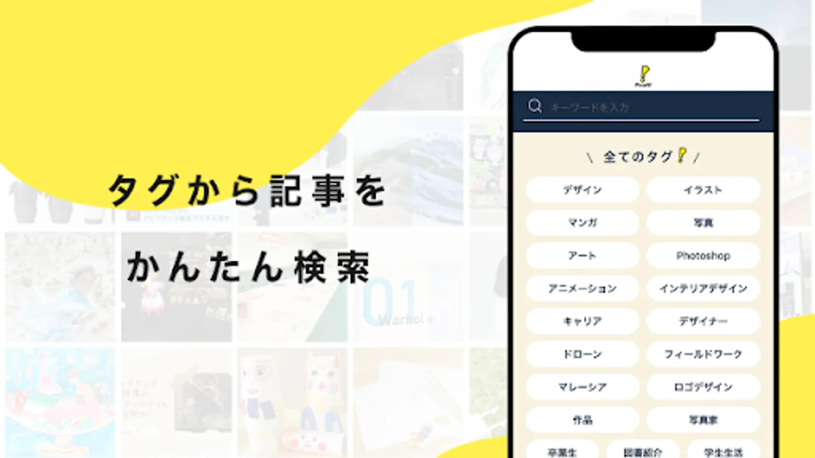 In addition to major categories such as design, illustration, manga, photography, and art, you can search for articles by various tags such as interior design, logo design, architecture, video, and designers.