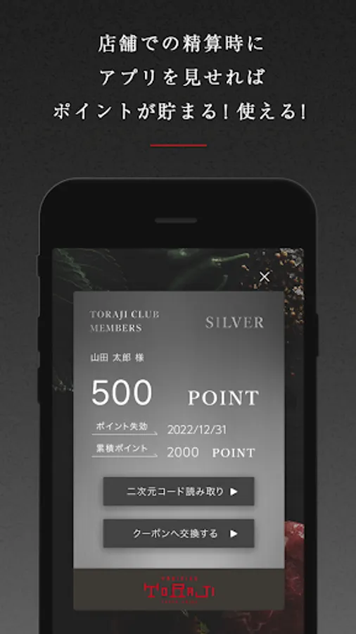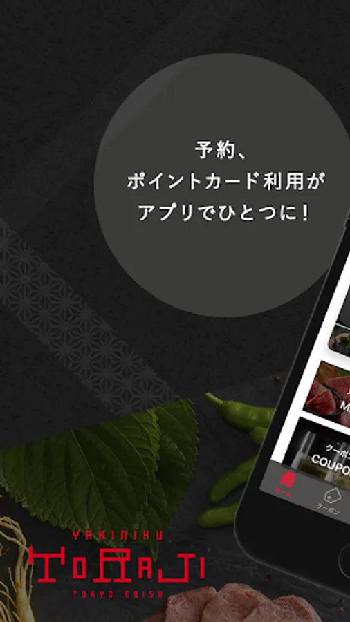 This is the official point app for Yakiniku Toraji, Beef Tongue Tannosuke, Gourmet Yakiniku Toraji Leaf Vegetables.