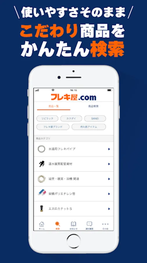 Founded in 2006, the number of transactions exceeded 30,000! It is an application of the plumbing material mail order site "Furekiya dot com". Leave it to us for water supply materials, gas components, and tools.