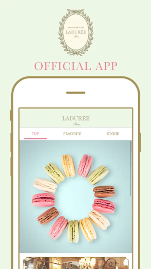 It is the official app of the long-established French Paris patisserie "Ladurée" popular with macaroons and patisserie.
