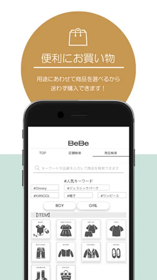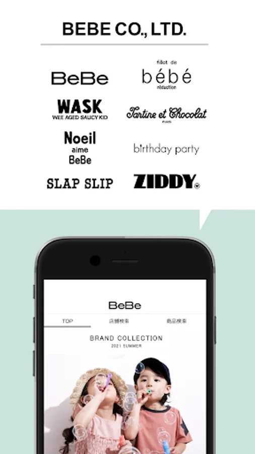 Easy online shopping for baby, kids and junior children's clothing and accessories from popular brands BeBe, Tartine et Chocolat, ZIDDY and SLAP SLIP. You can easily customize it with original contents such as wallpapers and original photo frames. In addition, you can quickly check the latest information such as limited campaigns and announcements of advantageous coupons.