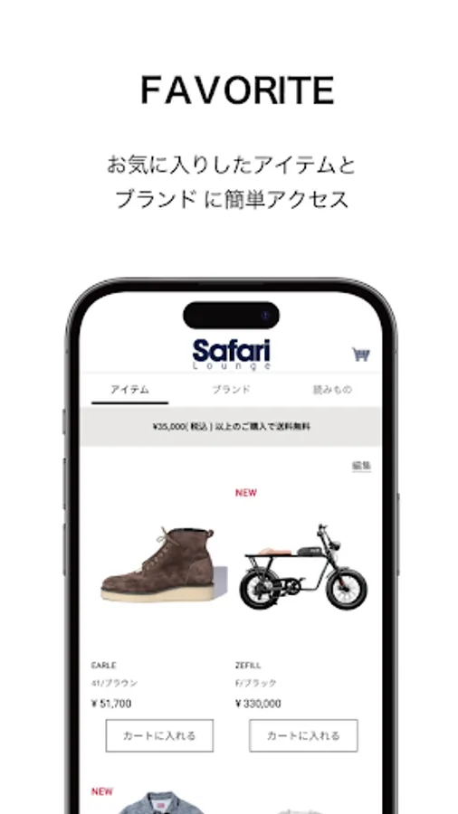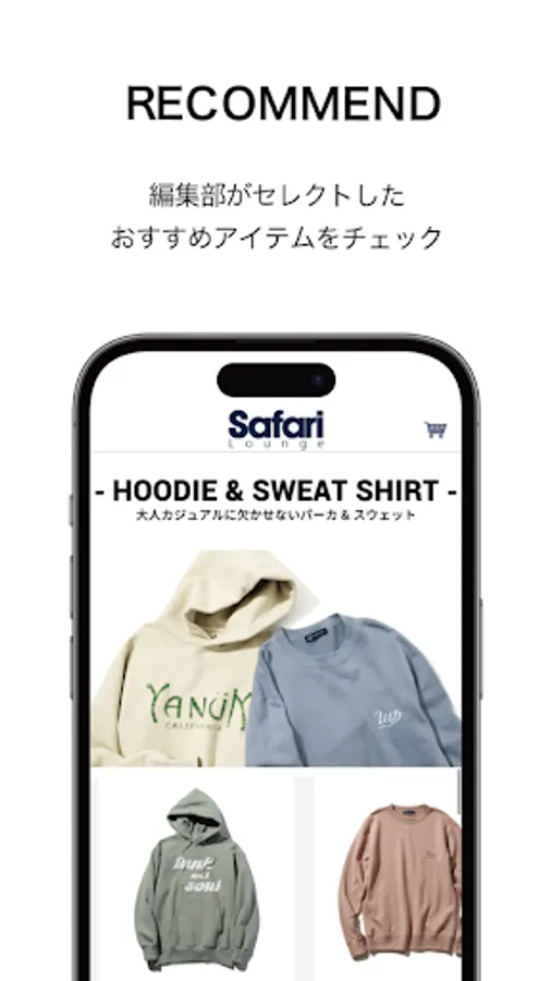 The official online store based on the world view of the magazine "Safari" is "Safari Lounge". We have a rich lineup of fashion items for adults, centered on the brands listed in "Safari".