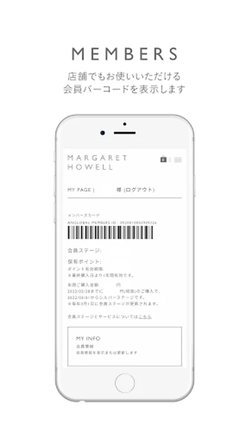 A member barcode that can be used as a member's card at stores is displayed.