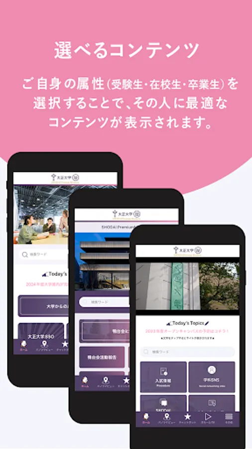 Full of content that will help prospective students, current students, and graduates learn more about the appeal of Taisho University, including information on entrance exams, current student activity reports, and monthly “words of the month” from the university!